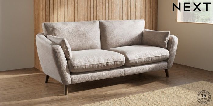 7.2.10 Orlo Relaxed Sit 3 Seater Sofa Boucle Chenille Light Natural Retro Tapered - Mid | Made Click here to use our website with more accessibility support, for example screen readers