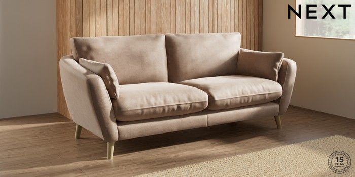 7.2.10 Orlo Relaxed Sit 3 Seater Sofa Luxe Chenille Mid Natural Retro Tapered - Light | Made Click here to use our website with more accessibility support, for example screen readers