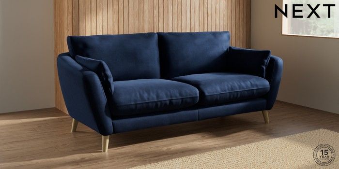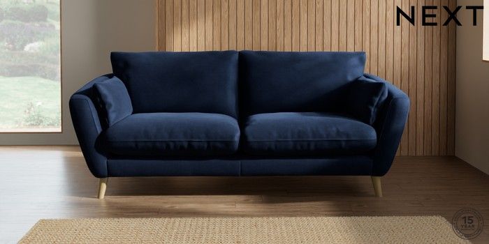 7.2.10 Orlo Relaxed Sit 3 Seater Sofa Luxe Chenille Navy Blue Retro Tapered - Light | Made Click here to use our website with more accessibility support, for example screen readers