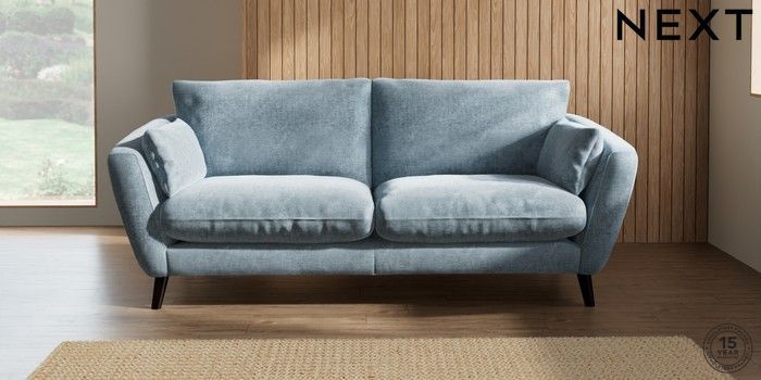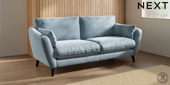 7.2.10 Orlo Relaxed Sit 3 Seater Sofa Plush Chenille Light Blue Retro Tapered - Dark | Made Click here to use our website with more accessibility support, for example screen readers