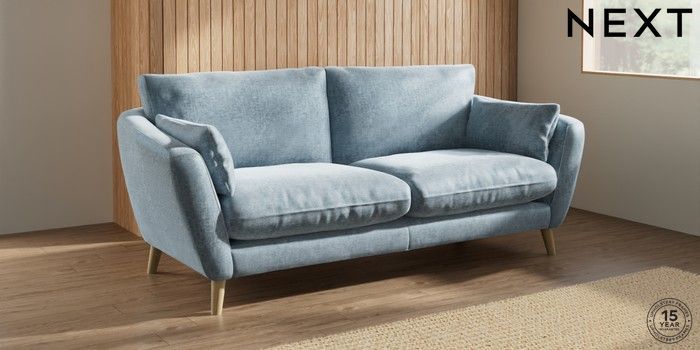 7.2.10 Orlo Relaxed Sit 3 Seater Sofa Plush Chenille Light Blue Retro Tapered - Light | Made Click here to use our website with more accessibility support, for example screen readers