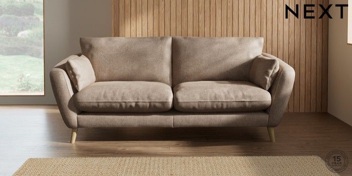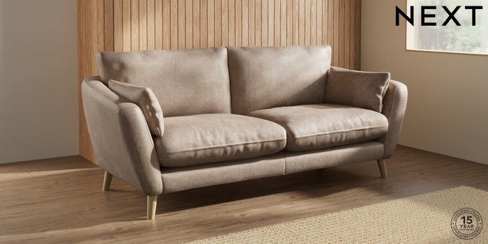 7.2.10 Orlo Relaxed Sit 3 Seater Sofa Plush Chenille Mid Natural Retro Tapered - Light | Made Click here to use our website with more accessibility support, for example screen readers
