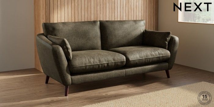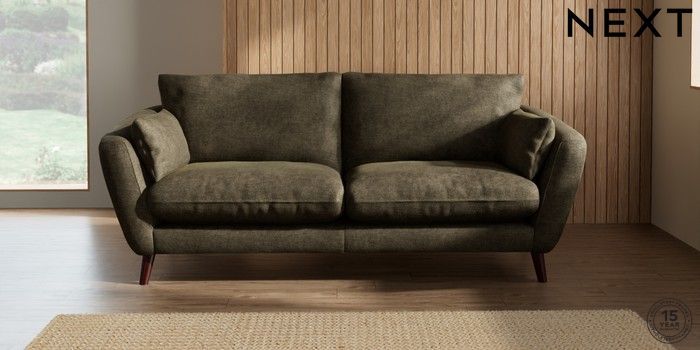 7.2.10 Orlo Relaxed Sit 3 Seater Sofa Plush Chenille Moss Green Retro Tapered - Dark Brown | Made Click here to use our website with more accessibility support, for example screen readers