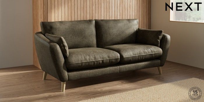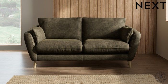 7.2.10 Orlo Relaxed Sit 3 Seater Sofa Plush Chenille Moss Green Retro Tapered - Light | Made Click here to use our website with more accessibility support, for example screen readers