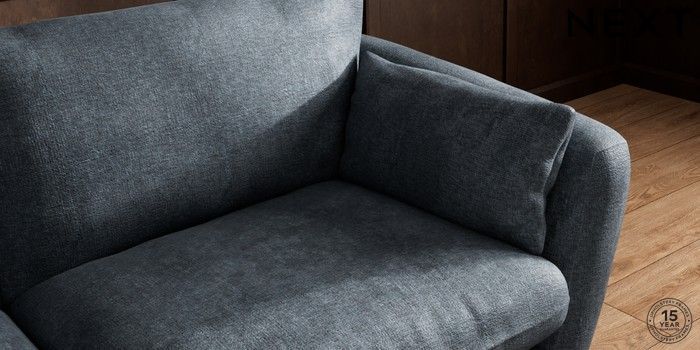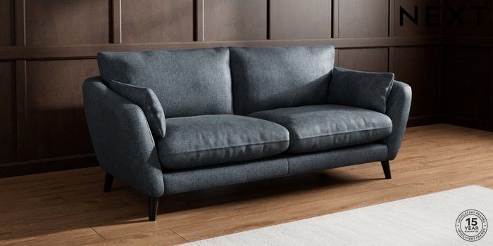 7.2.10 Orlo Relaxed Sit 3 Seater Sofa Plush Chenille Slate Blue Retro Tapered - Dark | Made Click here to use our website with more accessibility support, for example screen readers