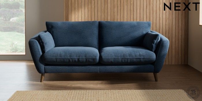 7.2.10 Orlo Relaxed Sit 3 Seater Sofa Ripple Chenille Dark Blue Retro Tapered - Mid | Made Click here to use our website with more accessibility support, for example screen readers
