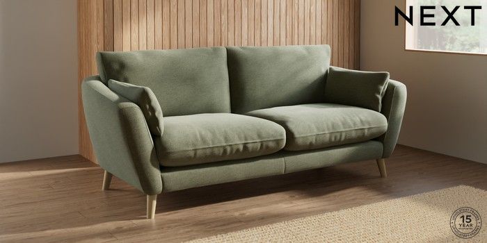 7.2.10 Orlo Relaxed Sit 3 Seater Sofa Ripple Chenille Mid Moss Green Retro Tapered - Light | Made Click here to use our website with more accessibility support, for example screen readers