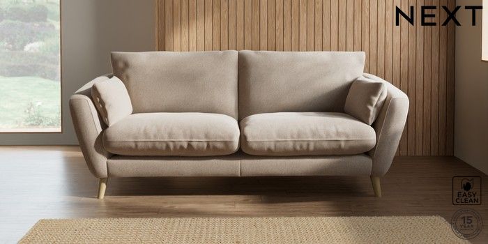 7.2.10 Orlo Relaxed Sit 3 Seater Sofa Tweedy Blend Easy Clean Light Dove Natural Retro Tapered - Light | Made Click here to use our website with more accessibility support, for example screen readers