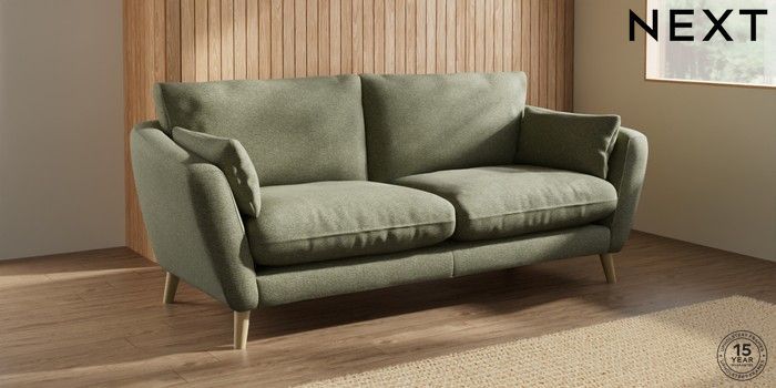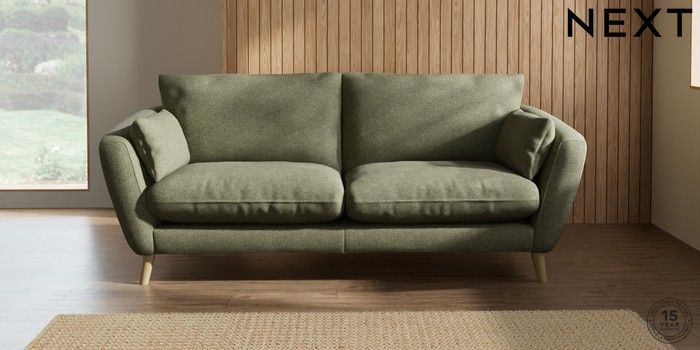 7.2.10 Orlo Relaxed Sit 3 Seater Sofa Tweedy Chenille Mid Moss Green Retro Tapered - Light | Made Click here to use our website with more accessibility support, for example screen readers