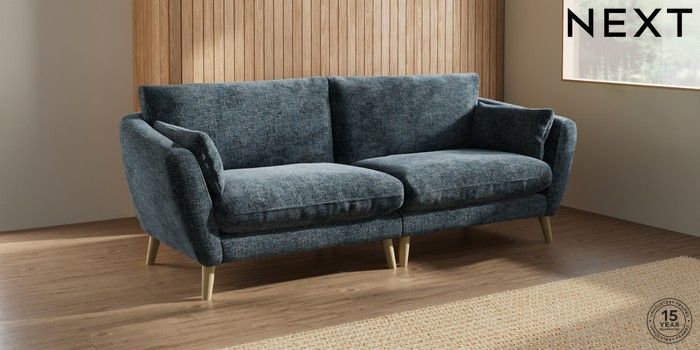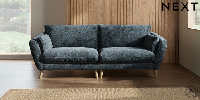 7.2.10 Orlo Relaxed Sit 4 Seater Sofa Chunky Chenille Dark Navy Blue Retro Tapered - Light | Made Click here to use our website with more accessibility support, for example screen readers