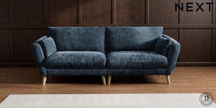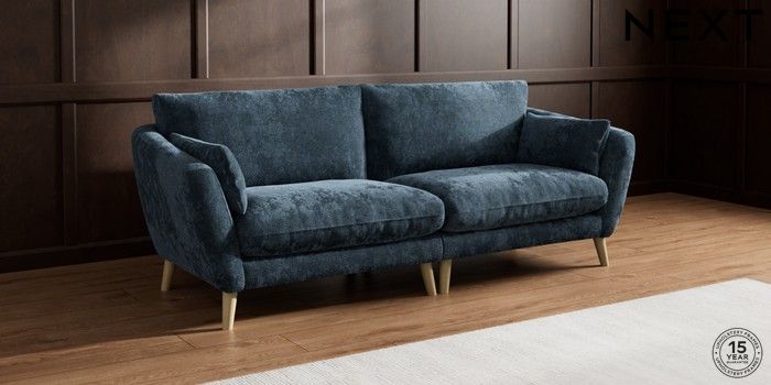 7.2.10 Orlo Relaxed Sit 4 Seater Sofa Distressed Velour Midnight Blue Retro Tapered - Light | Made Click here to use our website with more accessibility support, for example screen readers