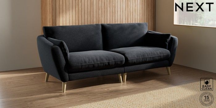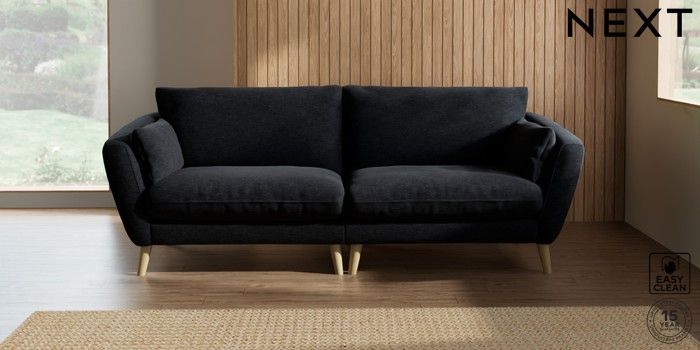 7.2.10 Orlo Relaxed Sit 4 Seater Sofa Fine Chenille Easy Clean Black Retro Tapered - Light | Made Click here to use our website with more accessibility support, for example screen readers