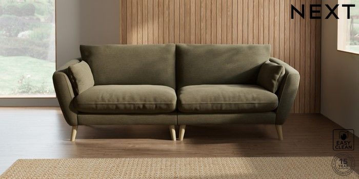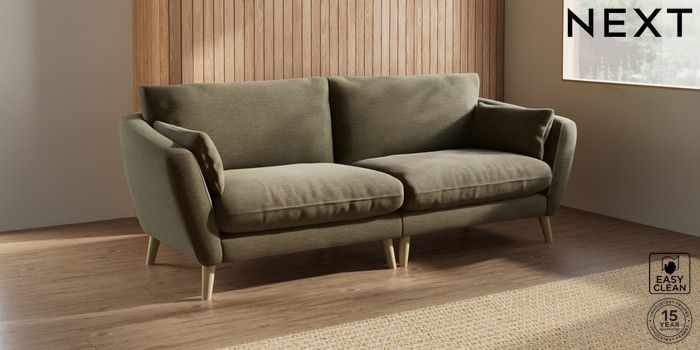 7.2.10 Orlo Relaxed Sit 4 Seater Sofa Fine Chenille Easy Clean Dark Moss Green Retro Tapered - Light | Made Click here to use our website with more accessibility support, for example screen readers
