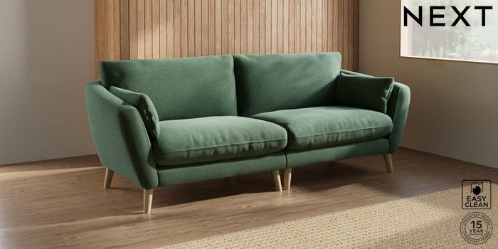 7.2.10 Orlo Relaxed Sit 4 Seater Sofa Fine Chenille Easy Clean Mid Khaki Green Retro Tapered - Light | Made Click here to use our website with more accessibility support, for example screen readers