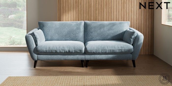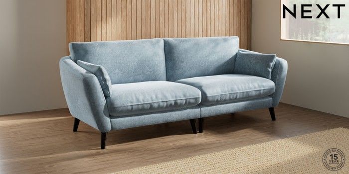 7.2.10 Orlo Relaxed Sit 4 Seater Sofa Plush Chenille Light Blue Retro Tapered - Dark | Made Click here to use our website with more accessibility support, for example screen readers
