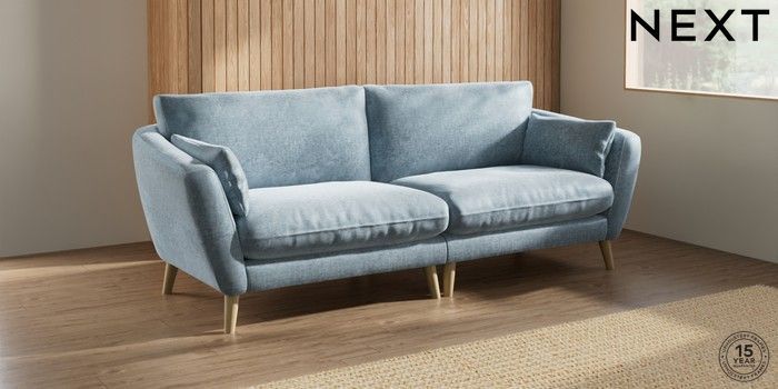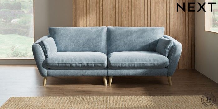 7.2.10 Orlo Relaxed Sit 4 Seater Sofa Plush Chenille Light Blue Retro Tapered - Light | Made Click here to use our website with more accessibility support, for example screen readers