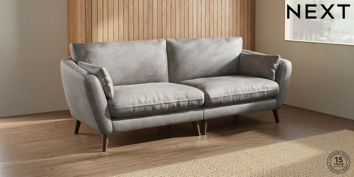 7.2.10 Orlo Relaxed Sit 4 Seater Sofa Plush Chenille Light Grey Retro Tapered - Mid | Made Click here to use our website with more accessibility support, for example screen readers