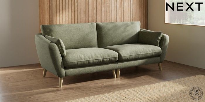 7.2.10 Orlo Relaxed Sit 4 Seater Sofa Tweedy Chenille Mid Moss Green Retro Tapered - Light | Made Click here to use our website with more accessibility support, for example screen readers