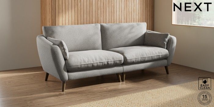 7.2.10 Orlo Relaxed Sit 4 Seater Sofa Woven Chenille Easy Clean Light Grey Retro Tapered - Mid | Made Click here to use our website with more accessibility support, for example screen readers