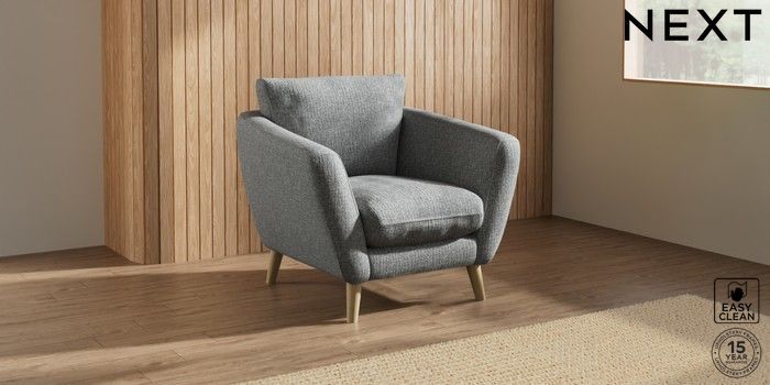 7.2.10 Orlo Relaxed Sit Armchair Chunky Boucle Easy Clean Mid Grey Retro Tapered - Light | Made Click here to use our website with more accessibility support, for example screen readers