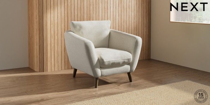 7.2.10 Orlo Relaxed Sit Armchair Chunky Texture Oyster Retro Tapered - Mid | Made Click here to use our website with more accessibility support, for example screen readers