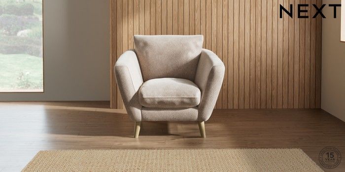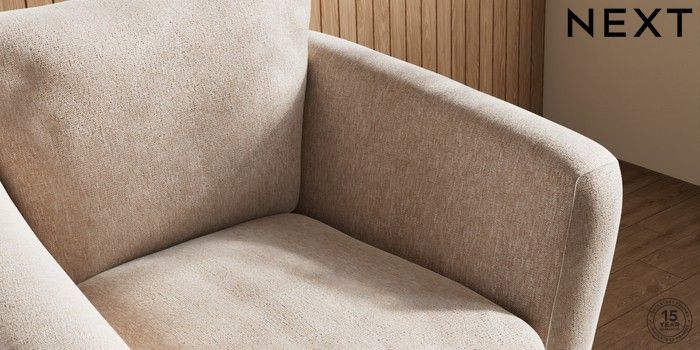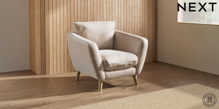 7.2.10 Orlo Relaxed Sit Armchair Cotswold Chenille Light Natural Retro Tapered - Light | Made Click here to use our website with more accessibility support, for example screen readers