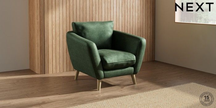 7.2.10 Orlo Relaxed Sit Armchair Luxe Chenille Dark Green Retro Tapered - Light | Made Click here to use our website with more accessibility support, for example screen readers