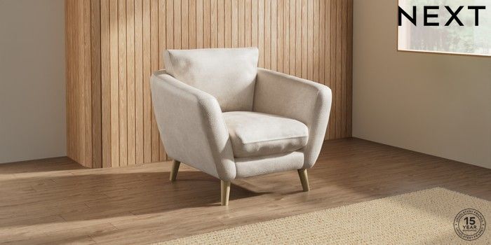 7.2.10 Orlo Relaxed Sit Armchair Plush Chenille Oyster Retro Tapered - Light | Made Click here to use our website with more accessibility support, for example screen readers