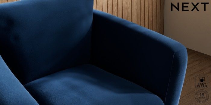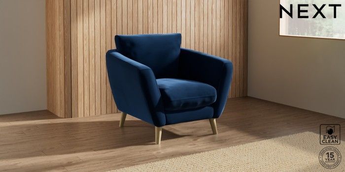 7.2.10 Orlo Relaxed Sit Armchair Plush Velvet Easy Clean Navy Blue Retro Tapered - Light | Made Click here to use our website with more accessibility support, for example screen readers