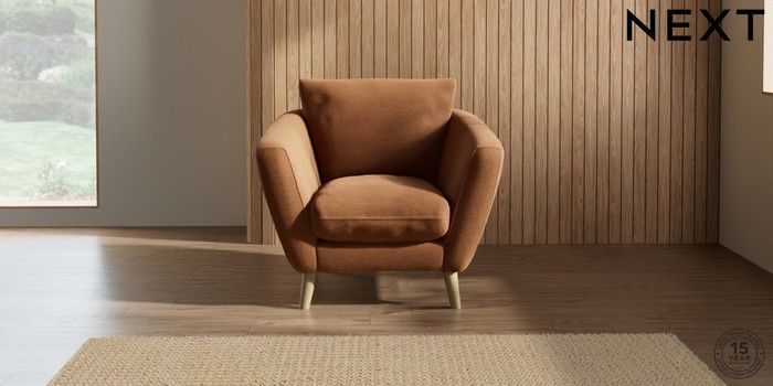 7.2.10 Orlo Relaxed Sit Armchair Ripple Chenille Mid Rust Brown Retro Tapered - Light | Made Click here to use our website with more accessibility support, for example screen readers