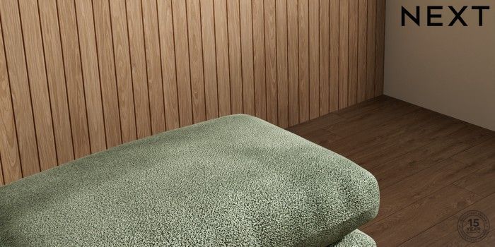 7.2.10 Orlo Relaxed Sit Footstool Boucle Chenille Dark Moss Green Retro Tapered - Dark Brown | Made Click here to use our website with more accessibility support, for example screen readers