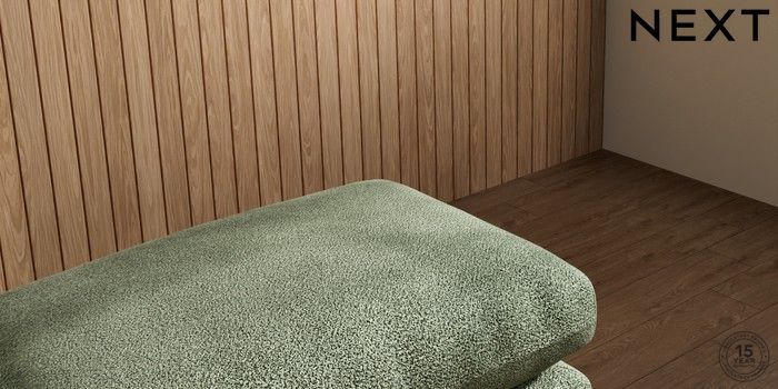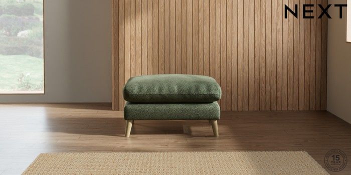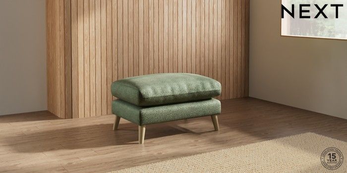 7.2.10 Orlo Relaxed Sit Footstool Boucle Chenille Dark Moss Green Retro Tapered - Light | Made Click here to use our website with more accessibility support, for example screen readers