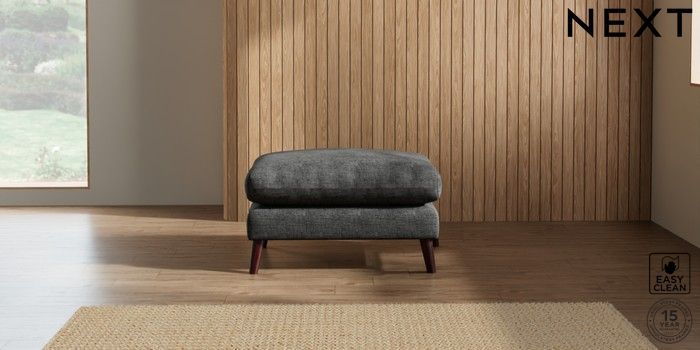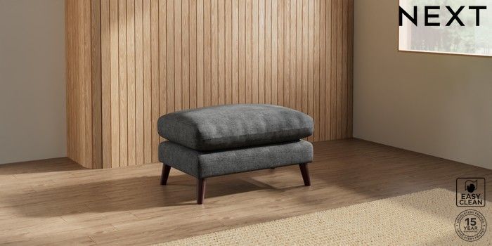 7.2.10 Orlo Relaxed Sit Footstool Boucle Weave Easy Clean Charcoal Grey Retro Tapered - Dark Brown | Made Click here to use our website with more accessibility support, for example screen readers