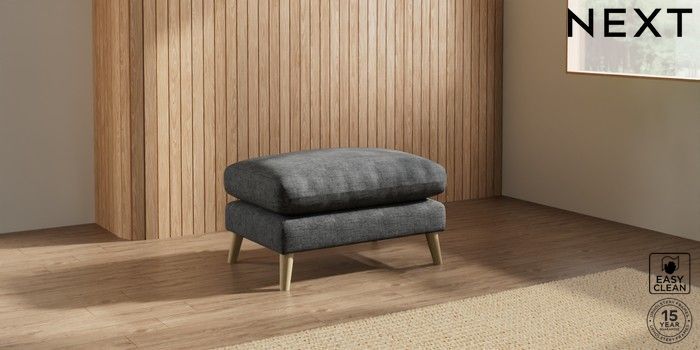 7.2.10 Orlo Relaxed Sit Footstool Boucle Weave Easy Clean Charcoal Grey Retro Tapered - Light | Made Click here to use our website with more accessibility support, for example screen readers