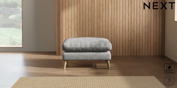 7.2.10 Orlo Relaxed Sit Footstool Chunky Boucle Easy Clean Light Grey Retro Tapered - Light | Made Click here to use our website with more accessibility support, for example screen readers