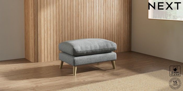 7.2.10 Orlo Relaxed Sit Footstool Chunky Boucle Easy Clean Mid Grey Retro Tapered - Light | Made Click here to use our website with more accessibility support, for example screen readers