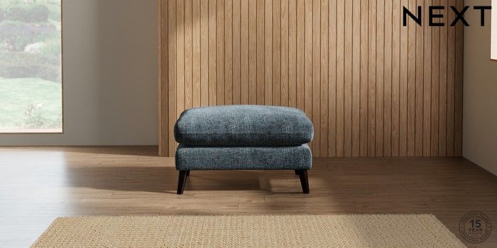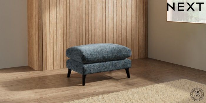 7.2.10 Orlo Relaxed Sit Footstool Chunky Chenille Dark Navy Blue Retro Tapered - Dark | Made Click here to use our website with more accessibility support, for example screen readers