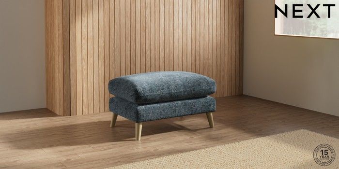7.2.10 Orlo Relaxed Sit Footstool Chunky Chenille Dark Navy Blue Retro Tapered - Light | Made Click here to use our website with more accessibility support, for example screen readers