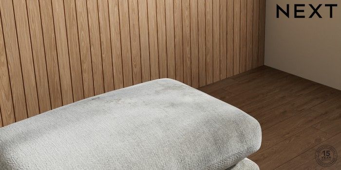 7.2.10 Orlo Relaxed Sit Footstool Chunky Chenille Light Grey Retro Tapered - Mid | Made Click here to use our website with more accessibility support, for example screen readers