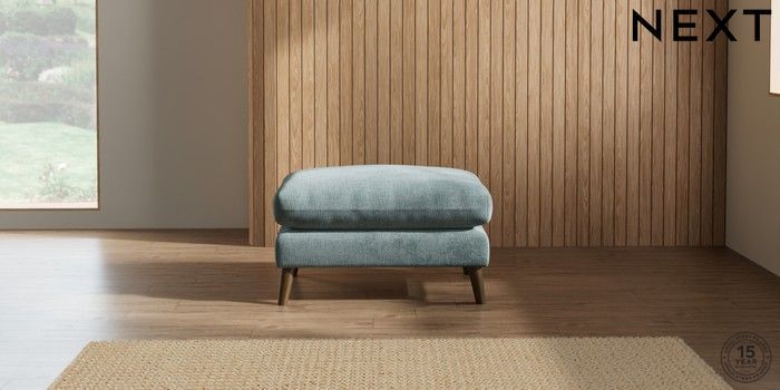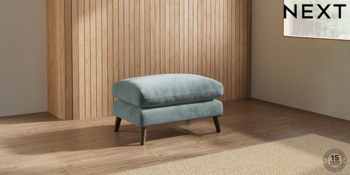 7.2.10 Orlo Relaxed Sit Footstool Chunky Chenille Light Teal Green Retro Tapered - Mid | Made Click here to use our website with more accessibility support, for example screen readers