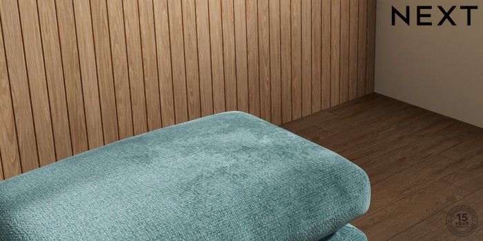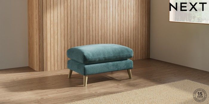 7.2.10 Orlo Relaxed Sit Footstool Chunky Chenille Mid Teal Green Retro Tapered - Light | Made Click here to use our website with more accessibility support, for example screen readers
