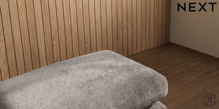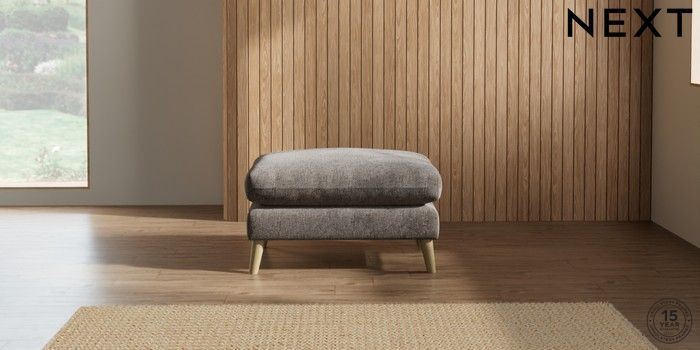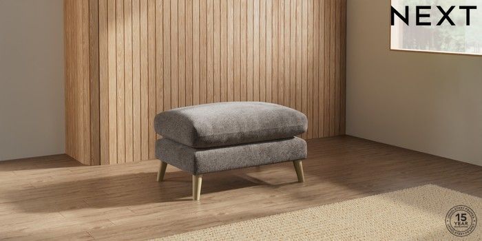 7.2.10 Orlo Relaxed Sit Footstool Chunky Chenille Mink Brown Retro Tapered - Light | Made Click here to use our website with more accessibility support, for example screen readers