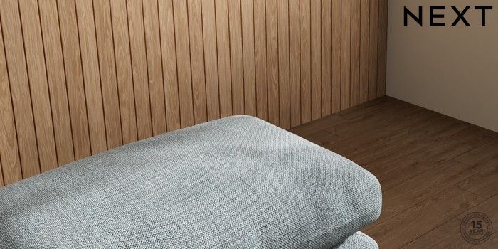 7.2.10 Orlo Relaxed Sit Footstool Chunky Weave Mid Blue Retro Tapered - Light | Made Click here to use our website with more accessibility support, for example screen readers