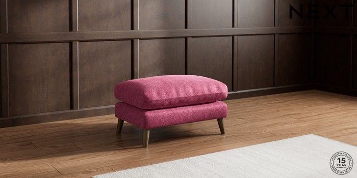 7.2.10 Orlo Relaxed Sit Footstool Cotswold Chenille Dark Raspberry Pink Retro Tapered - Mid | Made Click here to use our website with more accessibility support, for example screen readers