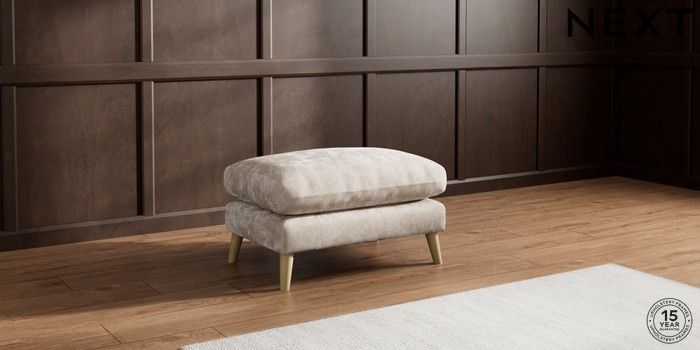 7.2.10 Orlo Relaxed Sit Footstool Distressed Velour Mid Natural Retro Tapered - Light | Made Click here to use our website with more accessibility support, for example screen readers