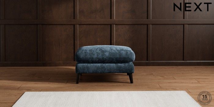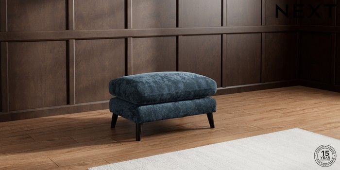 7.2.10 Orlo Relaxed Sit Footstool Distressed Velour Midnight Blue Retro Tapered - Dark | Made Click here to use our website with more accessibility support, for example screen readers
