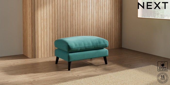 7.2.10 Orlo Relaxed Sit Footstool Fine Chenille Easy Clean Dark Juniper Green Retro Tapered - Dark | Made Click here to use our website with more accessibility support, for example screen readers