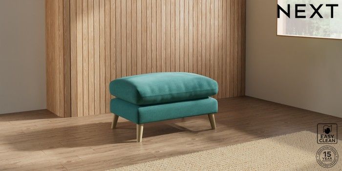 7.2.10 Orlo Relaxed Sit Footstool Fine Chenille Easy Clean Dark Juniper Green Retro Tapered - Light | Made Click here to use our website with more accessibility support, for example screen readers