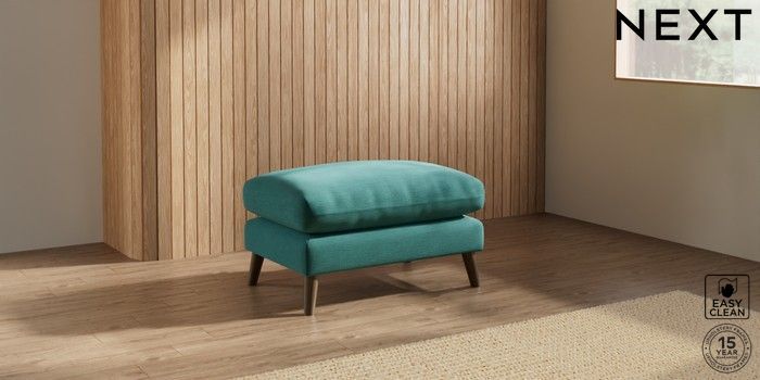 7.2.10 Orlo Relaxed Sit Footstool Fine Chenille Easy Clean Dark Juniper Green Retro Tapered - Mid | Made Click here to use our website with more accessibility support, for example screen readers