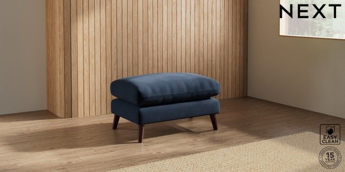 7.2.10 Orlo Relaxed Sit Footstool Fine Chenille Easy Clean Dark Navy Blue Retro Tapered - Dark Brown | Made Click here to use our website with more accessibility support, for example screen readers